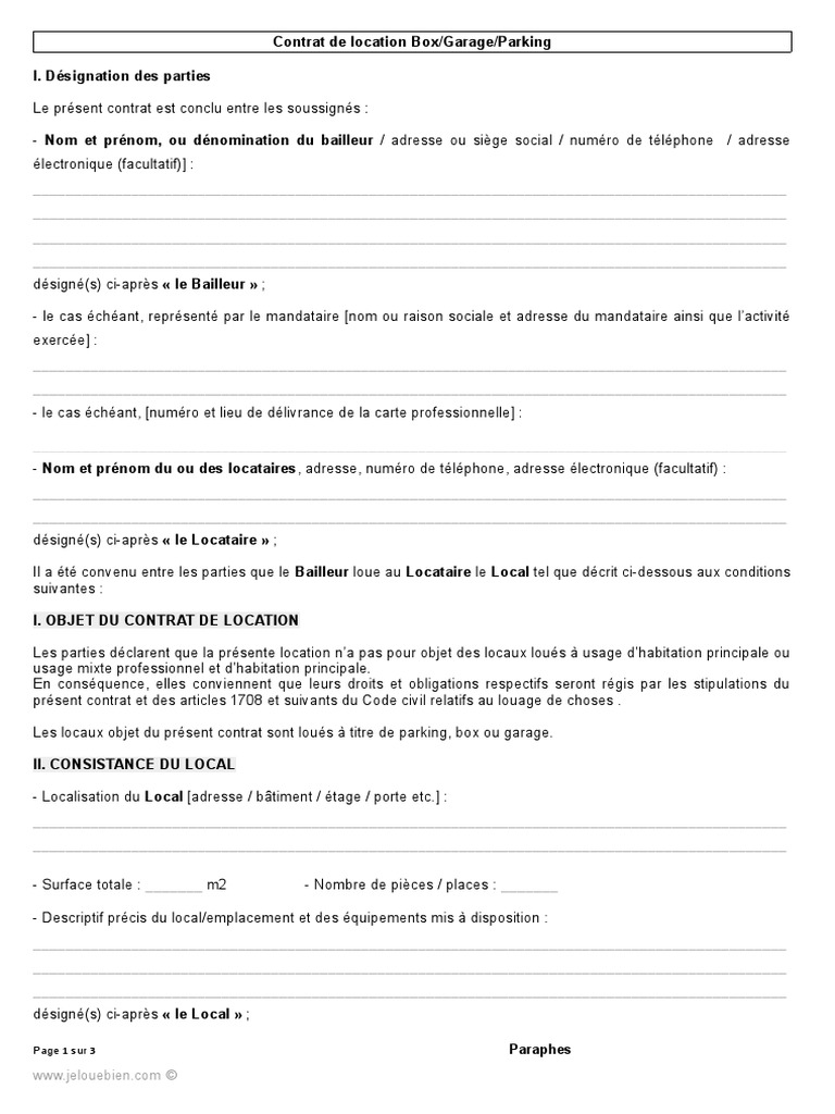 Parking Garage Box Contrat De Location Et Etat Des Lieux