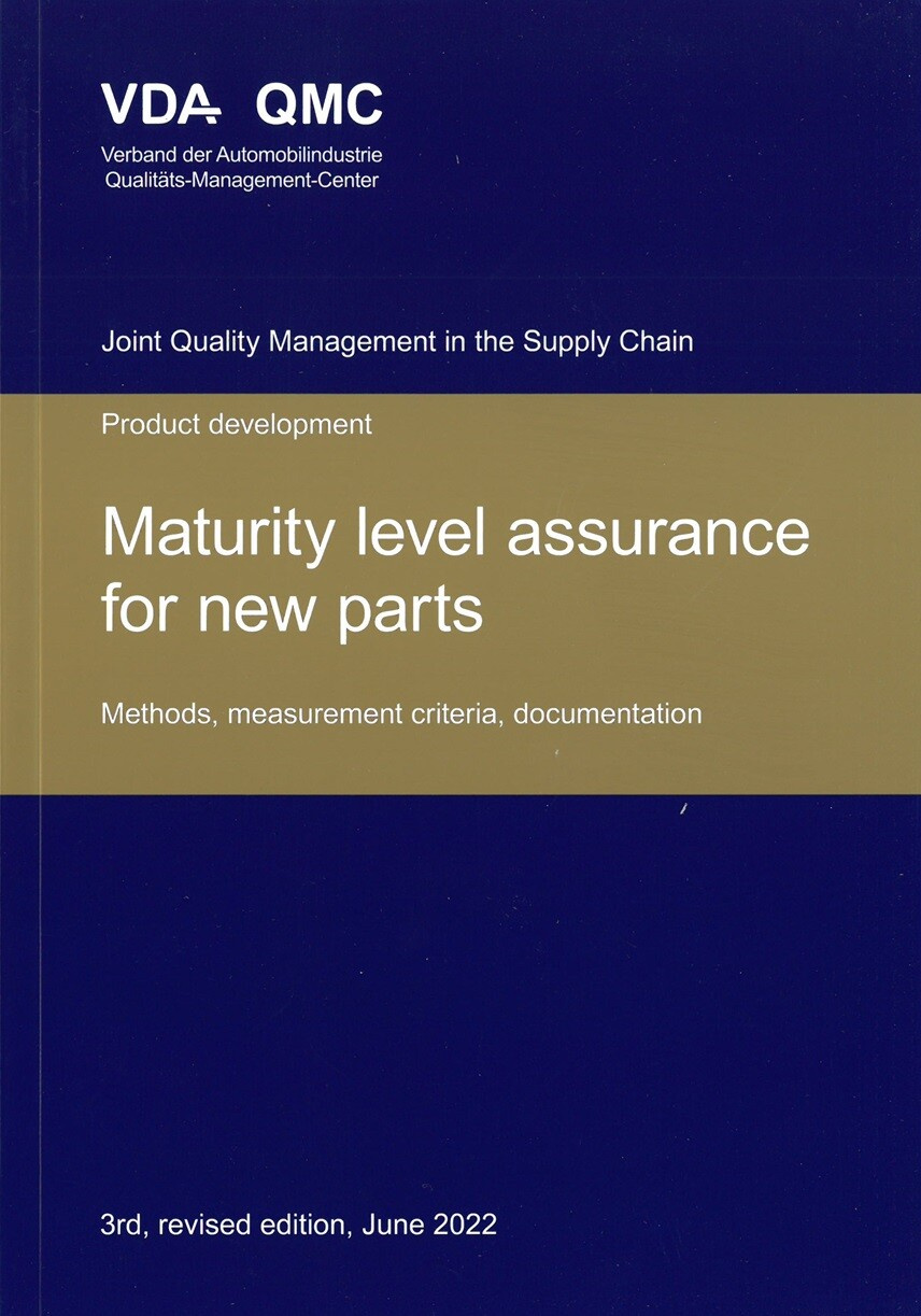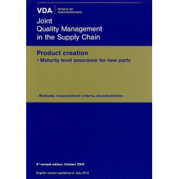 VDA MATURITY LEVEL 2nd Edition July 2010 - PRODUCT CREATION - MATURITY LEVEL ASSURANCE FOR NEW PARTS - METHODS MEASUREMENT CRITERIA DOCUMENTATION There is no abstract currently available for this document. In this volume the requirements are given for process specific content. Developed by the German automotive industry Maturity Level Assurance defines a structured approach to managing and controlling new projects.