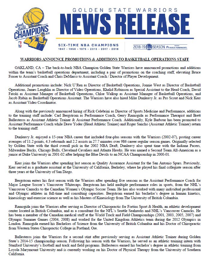 Warriors Pr On Twitter Warriors Announce Promotions And Additions To Basketball Operations Staff Https T Co Syftkbinxv Twitter