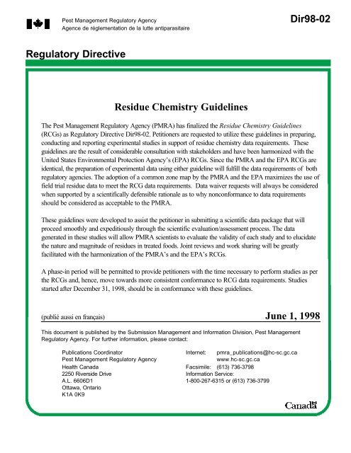 Regulatory Directive Residue Chemistry Guidelines Citeseer