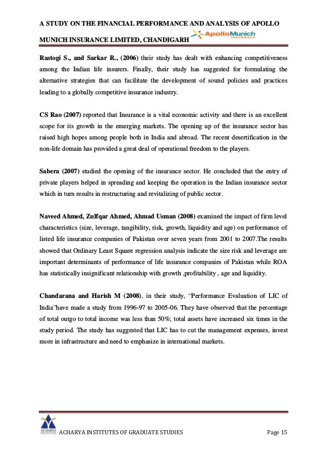 A Study On Financial Performance And Analysis At Apollo Munich Insura