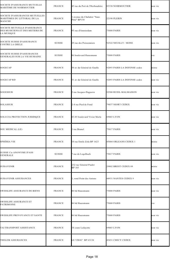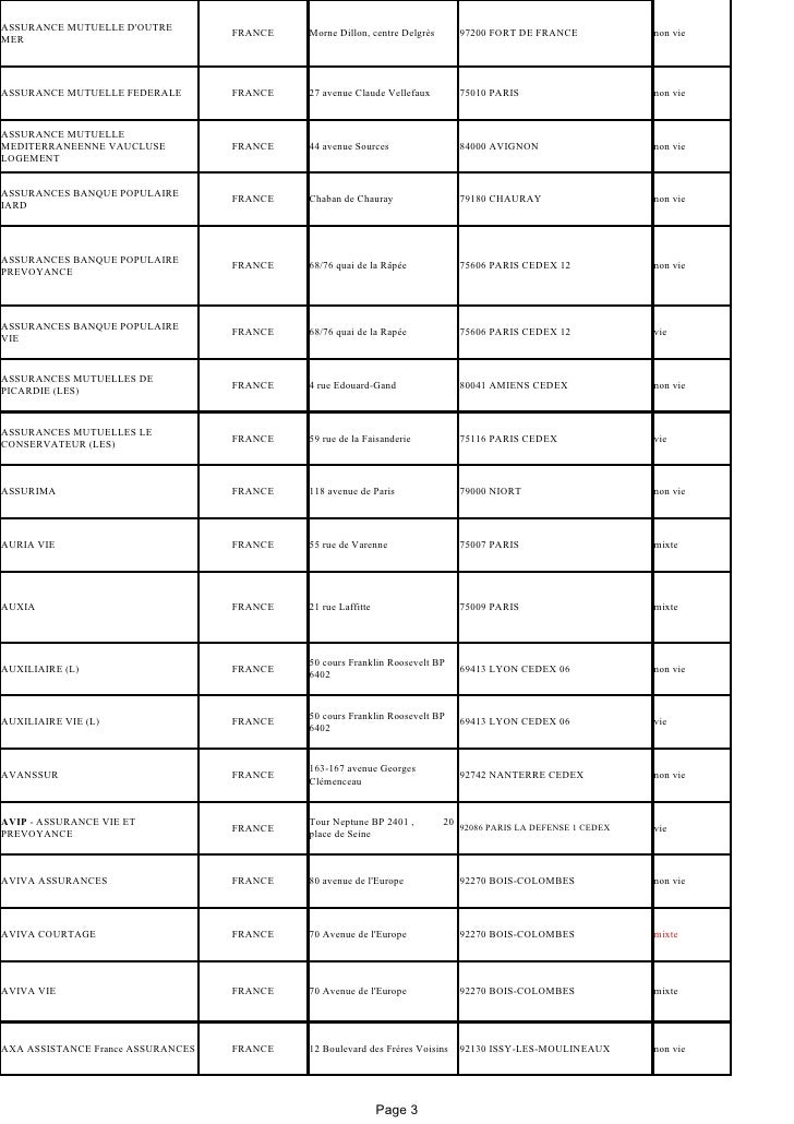 List Of Insurance Companies In French