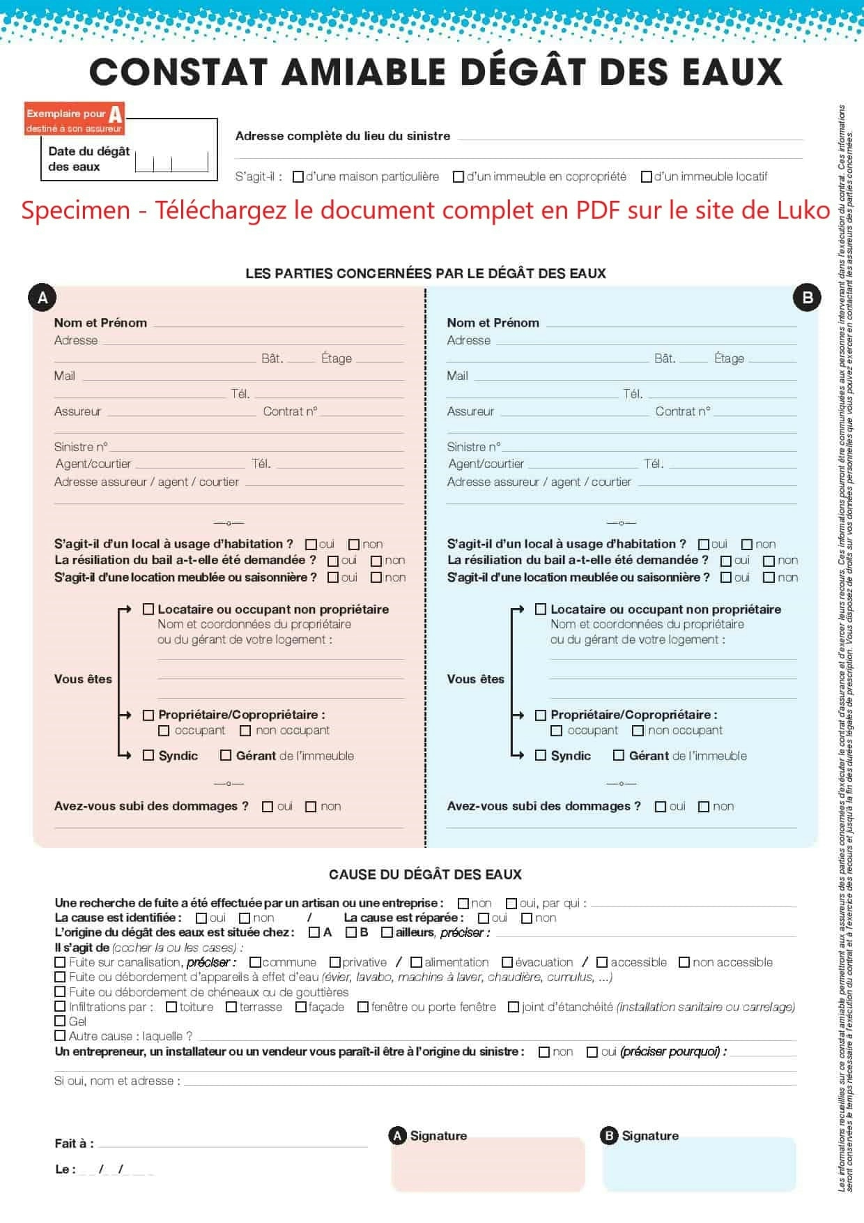 Constat Amiable Degat Des Eaux Mode D Emploi